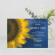 Convide os convidados para a sua festa de verão ou cair antes do casamento honrando a noiva e o noivo para estarem com o feliz Girassol Amarelo no Convite para Janto de Ensaio de Casamento Azul. Este elegante e personalizado janto de ensaio de casamento florescente apresenta uma fotografia floral de um girassol amarelo num fundo azul.
