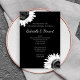 Convide os convidados para a sua festa de pré-casamento honrando a Noiva e o Cavalo para estarem com o clássico Girassol Branco sobre o Janto de Ensaio de Casamento Negro. Este elegante janto de ensaio floral personalizado convida a apresentar girassóis preto e branco sobre fundo preto.