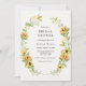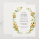 Chá de panela de girassol honrando a noiva! Design apresenta uma coroa de girassóis e verdes. Personalize com suas informações ou clique em "Clique para personalizar mais" para editar estilos de fonte, tamanho e cores.