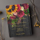 Modelo de convite de casamento elegante e sofisticado para o verão ou outono, com tema rústico, em madeira de celeiro marrom escuro, apresentando um belo buquê de girassóis amarelos dourados e rosas vermelhas burgundy, cordões de luzes cintilantes e tipografia dourada falsa em script. ++++++++++++ Fácil de personalizar com seus detalhes! +++++++++++++++++ O convite é adequado para casamentos rústicos e elegantes no campo, no verão ou outono. -- Se precisar de ajuda para personalizá-lo, por favor entre em contato!