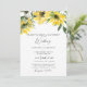 Convite De Casamento. Teais e cor-de-água verde muda em cascata do canto superior esquerdo. Tipografia moderna. Os pais a dar noiva. Design moderno. Elegante. Fosca. Girassóis. Costas amarelas