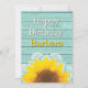 Um girassol alegre em um lugar com um fundo de madeira de aqua rústica. Design para uma festa ou evento.