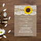 Este girassol rústico, burlap e lace chá de panela fará o anúncio perfeito para qualquer noiva! A design apresenta um adorável fundo de efeito de burvolta rústica com uma trim romântica de efeito de renda branca vintage acabada com um girassol e fio espantosos. Esses convites podem ser personalizados para sua ocasião especial e farão o anúncio perfeito para qualquer casamento no país rústico, chá de panela, festa de noivado, festa de aniversário e muito, muito mais. *Por favor, note que Zazzle só vende convites impressos para que estes convites não tenham nenhum material real de burvolta, rendas, girassol ou fio.