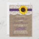 Este girassol rústico, burlap e lace chá de panela fará o anúncio perfeito para qualquer noiva! A design apresenta um adorável fundo de efeito de burvolta rústica com uma trim romântica de efeito de renda branca vintage acabada com um girassol espantoso e fita roxa. Esses convites podem ser personalizados para sua ocasião especial e farão o anúncio perfeito para qualquer casamento no país rústico, chá de panela, festa de noivado, festa de aniversário e muito, muito mais. *Por favor, note que Zazzle só vende convites impressos para que estes convites não tenham nenhum material real de burlap, renda, girassol ou fita.