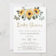 Esses convites de chuveiros de bebês, rústicos e neutros em relação ao gênero, apresentam bonito girassóis de cor d'água em tons coloridos de amarelo e ouro, com folhas verdes em um simples fundo branco com um roteiro casual de ouro falso.