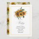 Celebre seu dia especial com este convite de casamento rústico com girassóis vibrantes, verde delicado e sotaques de ouro elegantes. O fundo do texto antigo no verso adiciona um toque único e encantador, fazer perfeito para um campo ou casamento inspirado na natureza.