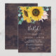 Este convite para churrasco de chá de fraldas de girassol rústico é perfeito para um chá de casais. O design floral boêmico apresenta girassóis amarelos, flores cor-de-rosa pinceladas e verde-caçador de eucalipto verde em aquarela com um elegante e moderno sentimento de bolho. Este convite pode ser usado para um chá de fraldas casal, revelação de gênero ou uma festa para conhecer o novo bebê.