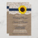 Convites Girassol Russo No Burlap & Lace Chá de casamento