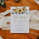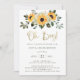 Estes convites para bebês rústicos apresentam flores solares de cor d'água bonito em tons coloridos de amarelo e ouro, com folhas verdes em um simples fundo branco com um roteiro casual de ouro falso que diz "oh garoto!"