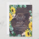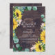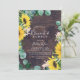 Este rústico brunch de madeira de girassol e chá de panela espumante é perfeito para um evento no país. O design floral boêmico apresenta girassóis amarelos, flores cor-de-rosa pinceladas e verde-caçador de eucalipto verde em aquarela com um elegante e moderno sentimento de bolho.