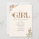 Tema do chá de fraldas Boho com a inscrição "GIRL" em terracotta, a cor decorada com boho pampas e outros designs botânicos e florais. Designs botânicos nos cantos.