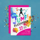 Jovens aventureiros, preparem-se para uma excitante festa de trampolim cheio de diversão! Nossos convites vibrantes apresentam fontes ousadas, uma silhueta infantil saltando em uma tipografia pintada por pincel moderna e colorida, com cada letra em uma matiz diferente. O design é aprimorado com palhetas coloridas lúdicas em um arco-íris de tinta, tudo contra um fundo branco limpo. Personalize seu convite com texto personalizável, disponível em formatos impressão e digital. O lado reverso pop com uma magenta, rosa brilhante e atraente para os olhos. Perfeito para crianças ou adolescentes que amam aventura e entusiasmo. Não perca essa incrível celebração — marque seus calendários e prepare-se para um dia de diversão!