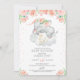 Girls Floral Sleeping Elephant Chá de fraldas Convite