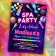 Vamos glitz & glam com arco-íris colore maquiagem de meninas e convite de barramento de festas do spa do unhas