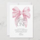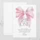 Girl's just wanna be one! | Pink Bow 1st Birthday Invitation - A pretty pink bow coquette themed first birthday invitation with modern watercolour pink bow. Contact us for matching items.