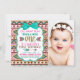 Meninas primeiro convite de aniversário tribal com setas tribais e arco azul escuro em um bonito fundo nativo americano asteca índio asteca. Você pode personalizar facilmente este adorável e adorável convite tribal de primeiro aniversário simplesmente adicionando seus detalhes de fotos e eventos. Este é um design impresso sem arcos reais, brilho, etc.