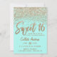 Convites Girly Aqua Teal Dourada Espalhada Glitter Sweet 16