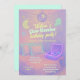 Celebre em estilo brilhante com este convite de aniversário sonhador do sonhador! Com uma paleta de neon pastel, este design inclui uma bola de disco, travesseiros fluffy e um leitor de discos brilhantes, perfeito para adolescentes que amam música que querem uma festa de pijama aconchegante e na moda. Os tons de lavanda suave e pêssego misturados a estrelas brilhantes e notas de música criam uma vibração divertida e mágica. Personalize com os detalhes da sua festa e prepare-se para uma noite de jogos, bolo e músicas meritórias de dança!