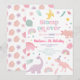 Este adorável convite de aniversário apresenta dinossauros desenhados à mão, arco-íris e folhas em cores pastéis.