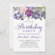Convites Girly Purple Floral Watercolor Script Birthday