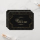 Placa de estilo Gam Art Deco Black Gatsby 1920. Apresenta o estilo Art Deco, forma falsa de folha de ouro e ornamentos, fontes lindíssimas vintage, num fundo de deco de arte dourada. Use a ferramenta Personalizar para adicionar suas informações. Para obter itens correspondentes, visite minha Coleção de Estilos de 1920 Arte Deco Dourada.