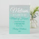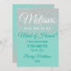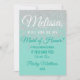 Glamoroso, chique e elegante falso brilho branco impresso em um fundo verde-azulado, "Você será minha Dama de Honra?" Convites de Dama de Honra. Este design clássico e sofisticado é perfeito para a noiva moderna e elegante que deseja fazer sua Dama de Honra se sentir especial e amada. Personalize com sua própria mensagem na frente, bem como um monograma inicial personalizado no verso. Todo o design de impressão de foto.