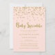 Convites Glam Dourado Confetti Baby Sprinkle em Rosa Esbran