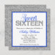 Convites Glam Faux Glitter Silver Blue Sweet 16
