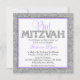 lavanda bonito e Bat Mitzvah prata convidam para uma garota moderna. Os designs são gráficos impressos planos - NÃO É O GLITTER REAL.