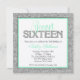 Convites Glam Faux Glitter Silver Mint Seafoam Sweet 16