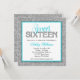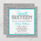 Convites Glam Faux Glitter Silver Teal Blue Sweet 16
