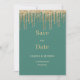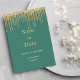 Um glam verde-mauve e ouro brilha pelo luxo Casamento Salve o convite da data é perfeito para qualquer garota elegante e sofisticada. Este design geométrico brilhante e deslumbrante ouro brilhante é perfeito para o evento de festas de moda e na moda. Personalize este design com sua mensagem e informações personalizadas.