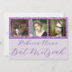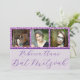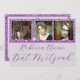 Convites Glam Purple Elegant Script 3 Photo Bat Mitzvah