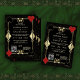 Design elegante e elegante, com código QR moderno, forma de Deco de Arte de Ouro com Fleur-de-lis, fatos de jogar cartas, iniciais no verso; tudo sobre fundo padrão de Deco de Arte de Ouro. Use a ferramenta Personalizar para adicionar suas informações. Para obter itens correspondentes, visite minha Coleção de Casamentos de Código QR.