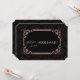 Romântico, design de cartão vintage com um estilo art déco dourado rosa de Gatsby, um estilo antigo de Hollywood dos anos 20, em padrão art déco rosa dourado em fundo preto. Use a ferramenta Personalizar para adicionar suas informações. Para mais, visite minha Coleção Grande Gatsby Rosa Dourado.