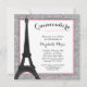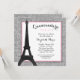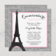 Uma Paris glamourosa temia Quinceanera convite. Mostre em rosa, prata e preto. Apresentando uma ilustração da torre Eiffel com um fundo falso de brilho prateado. Os designs são gráficos impressos planos - NÃO É O GLITTER REAL. Gráficos por Ilustrações JW no MyGrafico