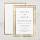 Um casamento elegante com quadros geométricos brancos e dourados. Este design minimalista apresenta um adorável e elegante design de borda de ouro geométrico num fundo branco. Personalize este design com sua mensagem e informações personalizadas. Todas as designs são impressas.