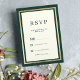 Um elegante e moderno marfim, verde florestal e convite RSVP de Casamento de luxo minimalista de ouro é perfeito para qualquer cerimônia clássica e sofisticada. Este belo design verde de ouro de glam, deslumbrante e simples, é perfeito para a moda e o casal de na moda ou para qualquer um. Personalize este design com sua própria mensagem e informações personalizadas. Todas as designs são impressas