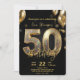 Convites Glamorous Sparkly Black and Gold 50th Birthday