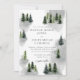 Elements: aquarela evergreens, pinheiro, abeto, pontilhando uma única montanha. Fontes de serif clássicas para texto. Cores: verde, terras altas, caçador, musgo, lacre, branco, preto. Temas: inverno, montanhas, casamento ao ar livre, país, rústico, caminhada, madeireira, ao ar livre. Coleção: Evergreen Mountain Glen White Green Black Collection Tipo de Produto: Convites para Casamento