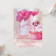 Convites Gliteria dourada com Rosa de balão, cor-de-rosa