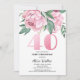 Convites Glitter 40th Pink Peony Floral Greenery Aniversári