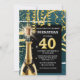 Um ouro falso moderno sobre um design azul-teta escuro, que inclui uma garrafa de ouro falso de vinho espumante com uma rolha explosiva; brilho brilhante de ouro e galerias verticais penduradas ao lado de modelos de texto branco a preto que contém um grande número de 40 em ouro. Estes são ideais para todos os quadragésimo aniversário e celebrações de negócios. Personalize o texto para se adequar ao seu evento.