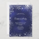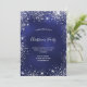 Um convite de inverno para uma festa de Natal. Um fundo azul incolor, decorado com cintilação cintilante falsa. Personalize e adicione os detalhes da sua festa.