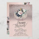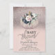 O convite para o chá de fraldas bonito apresenta um boque brilhante em ouro rosa com um chá de fraldas floral de abóbora. Esses convites para chuveiros de bebês são facilmente personalizados para seu evento simplesmente adicionando seus detalhes.