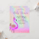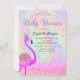 Convites Glitter Bokeh, Flamingo, Chá de fraldas Holográfic