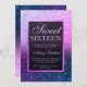 Um moderno, bonito chic e elegante azul escuro, chá brilhante roxo, brilho preto negro doce 16 convite de aniversário .