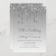 Este 18º convite de aniversário da moda apresenta uma borda cintilante de cintilação fina de prata e fundo de ombre prateado. As palavras "18º Aniversário" e o nome do convidado de honra aparecem na escrita casual de cinzas prateadas, com o resto do texto personalizável na fonte sans serif. No verso aparece o mesmo design de gota-gota prateada.