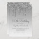 Este 60º convite de aniversário apresenta uma borda cintilante de luz cintilante e fundo azul ombre. As palavras "60º Aniversário" e o nome do convidado de honra aparecem na escrita casual de cinzas prateadas, com o resto do texto personalizável na fonte sans serif. No verso aparece o mesmo design de gota-gota prateada.