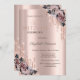 Um convite moderno, chico e glamouroso com pingos de brilho e flores em fundo de ouro rosa.